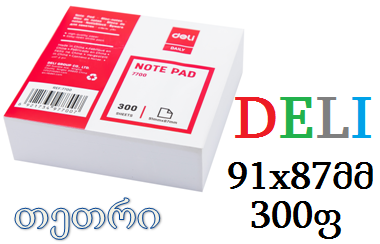 ჩასანიშნი ფურცლი თეთრი 91მმ*87მმ – 300ფ "Deli 7700" Art-1162 |