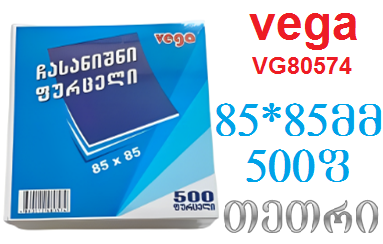 ჩასანიშნი ფურცლი თეთრი 85მმ*85მმ – 500ფ "Vega VG80574" Art-3548 |