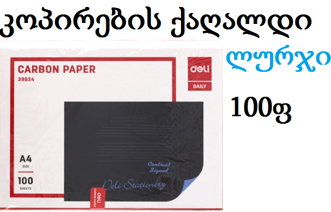 კოპირების ქაღალდი ლურჯი A4 100ფ DELI 39834 Art-3571