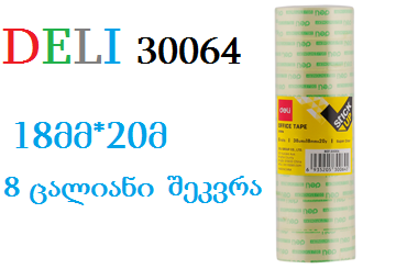 სკოჩი პატარა 18მმ*20მ 8ც შეკვრა, DELI 30064 Art-3612 |